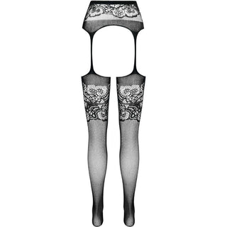 PASSION - S029 BLACK TIGHTS WITH GARTER ONE SIZE